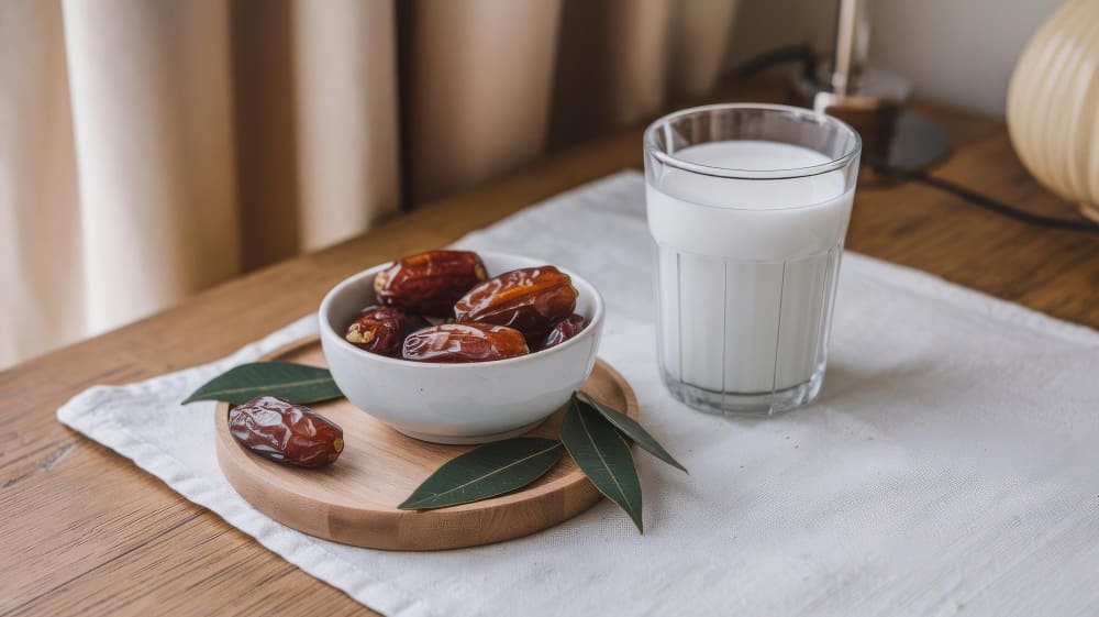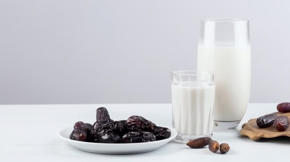 - يساعد التمر والحليب على تحقيق الشبع الكافي كما أنهمها لا يسببان الشعور بالجوع بسبب احتوائهما على الألياف الغذائية.